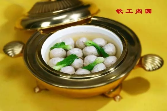 欽工肉圓選料講究,制作精細(xì),配料多樣。首先要選擇好主要原料:豬后腿的精瘦肉。制作時(shí),用冷水洗凈,切成小塊,然后用刀背或鐵棍拍打成糊狀。拍打時(shí),要用力適當(dāng)均勻,一氣呵成。然后拌以適量肥肉,粗精鹽、雞汁、蛋清、堿粉、純豆粉、姜蔥等佐料,攪拌均勻后,再發(fā)酵4-5小時(shí),方可下鍋,或汆湯,或油炸,皆成美味。